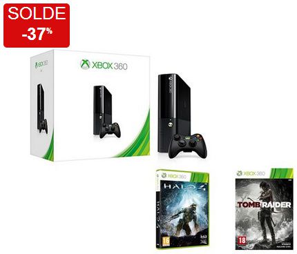149€ le modèle Xbox 360 250Go avec 2 jeux (Halo 4 et Tomb Raider) c'est à l'occasion des soldes sur RueduCommerce.