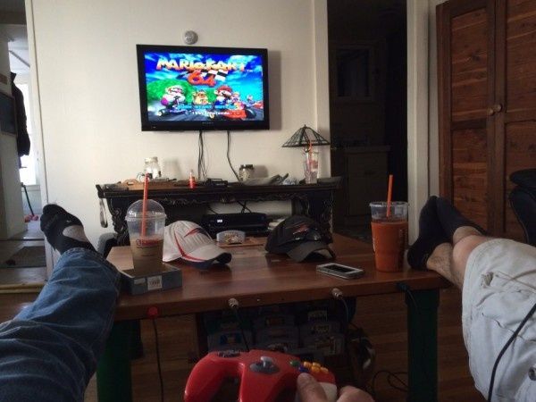 Je crois que ce type est fan inconditionnel de la Nintendo 64... Il s'est fabriqué une table basse en bois avec Nintendo 64 intégrée, sans oublier le rangement des manettes et cartouches. J'ai l'impression qu'il n'a pas l'intention de jouer à autre chose que cette console !